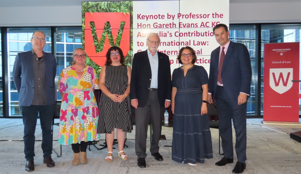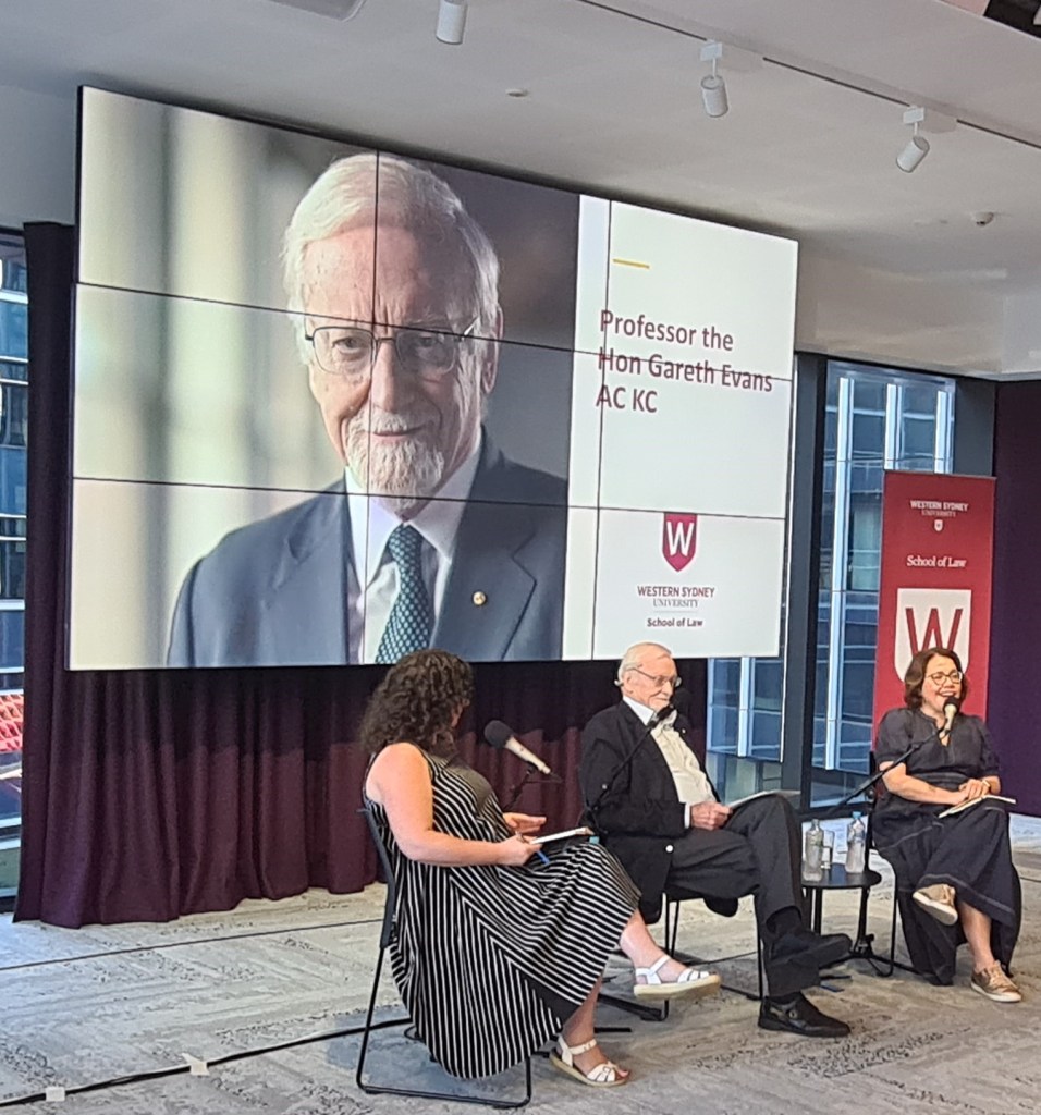 Professor Evans spoke to Australia’s willingness to engage seriously with international law, highlighting key developments in Australian history leading up to his own time as Australian Foreign Minister. He spoke to the audience about his conceptualisation of Australia as a “good international citizen”, highlighting its continued value in contemporary times.